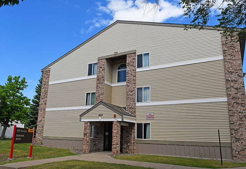From 5th Avenue turn east on 4th Street S. Follow 4th Street one block; Stateview Apartments North is on the corner of 4th Street and 4th Avenue.